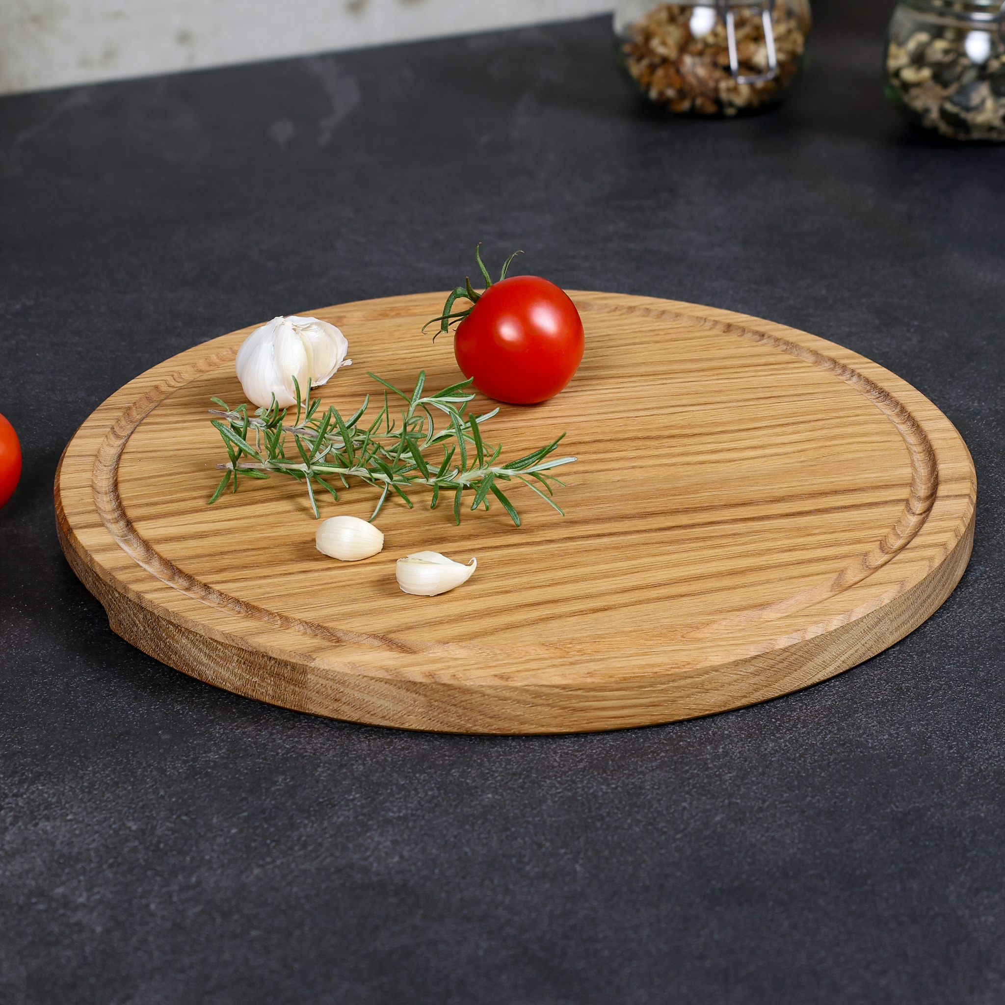 Elegant, robust, von Natur aus antibakteriell und klingenfreundlich – das sind nur einige Eigenschaften, die Pizzabretter aus Eiche so beliebt machen. Das harte Eichenholz bietet eine hervorragende Schnittfestigkeit und bleibt dabei beständig und pflegeleicht. Je nach Ausführung verfügt das Brett über eine umlaufende Krümelrille, die Krümel und Soße zuverlässig auffängt. Optional eingefräste Griffmulden erleichtern zudem das Anheben des Brettes und Servieren der Pizza.
