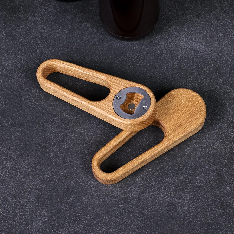 Die Weiterentwicklung des klassischen Flaschenöffners aus Eiche überzeugt mit einem einzigartigen Design. Die großzügige Ausfräsung verleiht dem traditionellen Look eine moderne Note und macht ihn zum perfekten Begleiter für jedes kühle Getränk. Der rostfreie, passgenau eingelassene Kapselheber sorgt für müheloses Öffnen, während der integrierte Magnet den Kronkorken sicher am Öffner festhält – kein lästiges Herunterfallen mehr!