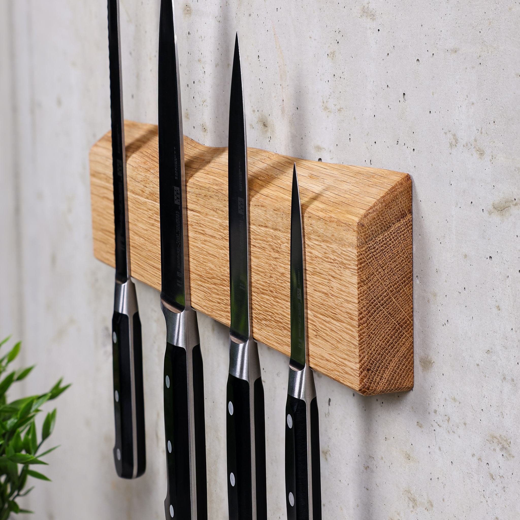 Magnetische Messerleiste aus Eiche mit Baumkante