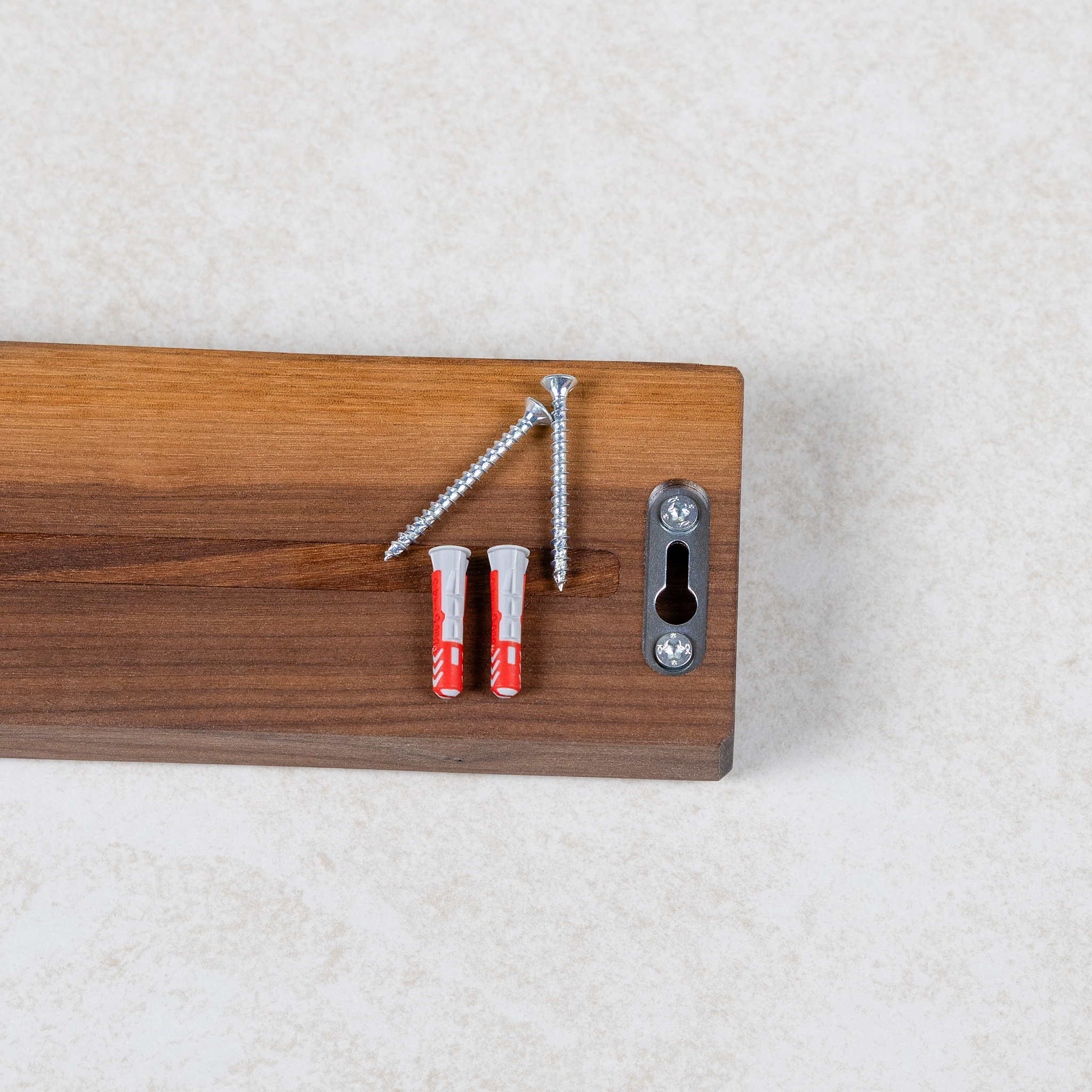 - Massivholz aus einem Stück: Gefertigt aus einem durchgehenden Stück Nussbaumholz – ohne Verleimung – überzeugt die Leiste durch Stabilität und eine ruhige, natürliche Optik. Die Holzoberfläche wird sorgfältig geschliffen und anschließend geölt. Dadurch ist das Material geschützt und behält seine natürliche Haptik.