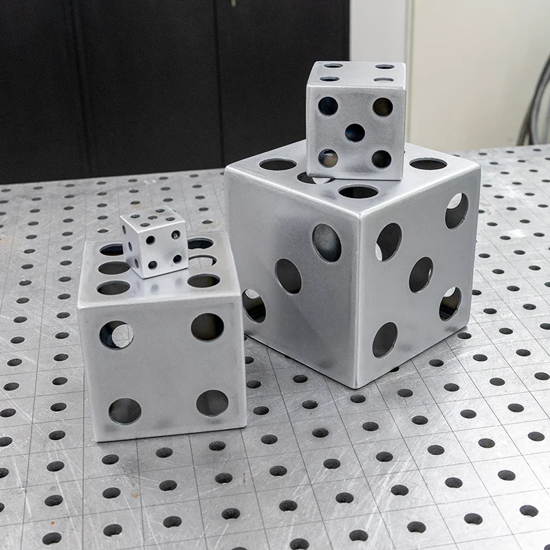 Der Spielwürfel ist das ideale Übungsobjekt für jedes Level – vom Anfänger bis hin zum Profischweißer. Das Besondere an dieser Schweißübung ist, dass Schweißnähte, falls gewünscht, in jeder erdenklichen Position möglich sind und dadurch auch ein routinierter Schweißer schnell aus seiner Komfortzone gelockt wird. Ebenfalls ist der Würfel ideal, um das Heften (erstmaliges Verbinden von Bauteilen) sowie Verschweißen von Löchern (die Ecken haben einen Radius) zu üben.